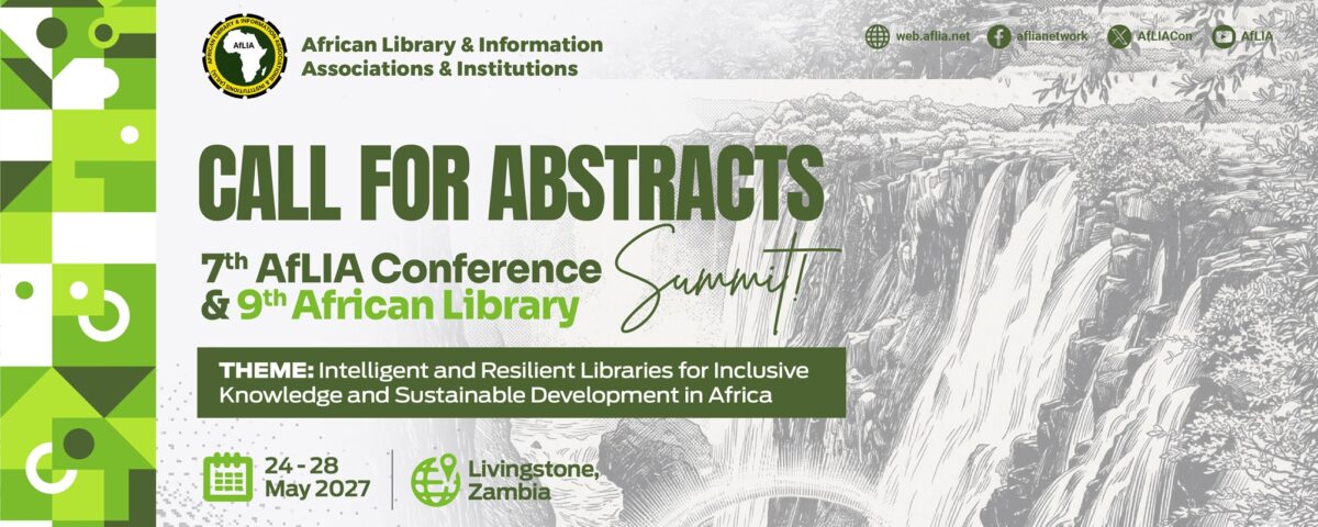 The African Library and Information Associations and Institutions (AfLIA) invites the submission of abstracts for its 2027 biennial Conference, to be held from 24-28 May 2027 in Livingstone, Zambia. It promises to be a landmark gathering of library and information professionals, scholars, researchers, technologists, and policymakers from across the African continent and the global library community. The conference will address the widespread convergence of digital transformation, artificial intelligence, learning, and social equity, and the enduring mission of libraries to serve every community through access to information and the power to learn, be educated, gain knowledge, and function optimally as literate citizens of the community.